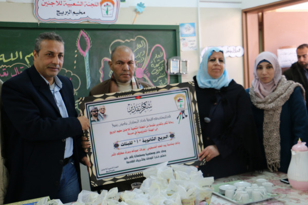من جانبه كرمت اللجنة الشعبية أكثر من 90 معلمة في المدرستين وقدمت لهن شهادة تقدير بأسمائهن وهدية متواضعة من اللجنة الشعبية للاجئين بالبريج تقديراً لهن على جهودهن وتميزهن في حفل صغير متواضع بمكتبة المدرسة.