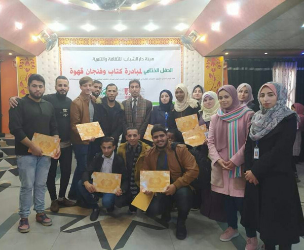 بحفل ثقافي بهيج، اختتمت هيئة دار الشباب للثقافة والتنمية، شمال قطاع غزة، وبدعم من الاتحاد العام للمراكز الثقافية ومكتب المساعدات الشعبية النرويجية، مبادرة ثقافية تحت وسم "كتاب وفنجان قهوة"؛ بمشاركة أفرقة شبابية وعدد من الأعضاء المشاركين والمتطوعين، في المبادرة ذات الفعاليات المختلفة.