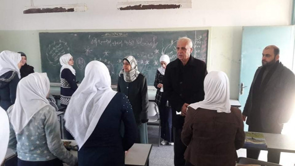 ورافق أ. العرابيد في جولته التفقدية رئيس قسم الرقابة الداخلية أ. محمد أبو ريا، فيما كان في استقبالهما مديرة المدرسة أ. حنان مطير.