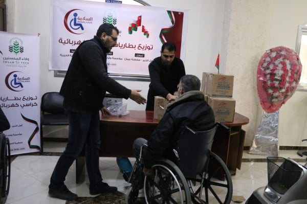 "وفاء المحسنين" توزع بطاريات للجرحى ذوي الإعاقة