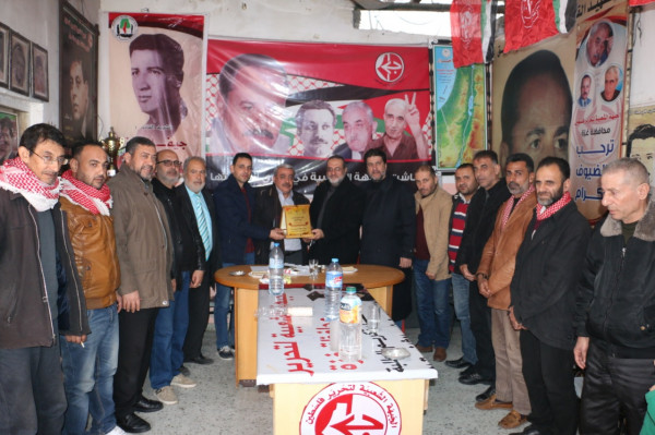 وفي ختام الزيارة قدم رئيس اللجنة درع تهنئة ومباركة في ذكرى انطلاقة الجبهة.