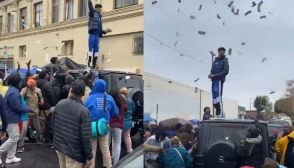 مغني راب أمريكي يقف فوق سيارته ويلقي الأموال على الفقراء