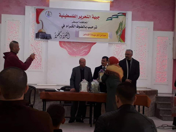 وفي نهاية الفعالية كرم عضوا اللجنة المركزية لجبهة التحرير الفلسطينية الدكتور سفيان مطر والدكتور جهاد شيخ العيد وأمين سر الجبهة في المحافظة الوسطي ميسرة الجديلي المشاركين في هذا العمل وشكروهم على جهودهم التى بذلوها من أجل نجاح هذا العمل الاجتماعي المهم .