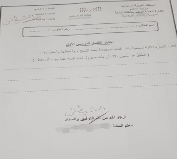 جاء ذلك بعد أحداث دراماتيكية خطيرة وغريبة من معلم في إحدى المدارس الابتدائية بتعليم الباحة، كان آخرها دخوله للمدرسة الثلاثاء الماضي -في حالة غريبة- وإصراره على اختبار مادته في ذلك اليوم؛ برغم تحديد اختبار مادته في الجدول في اليوم الذي يليه؛ فقام بتصوير الأسئلة بعد شطب عبارة "الله" وكتابة "الشيطان" بدلًا منها في بداية ونهاية الورقة، وتوزيعها على الطلاب في قاعة الاختبار، في وجود أحد المشرفين التربويين بالمدرسة.