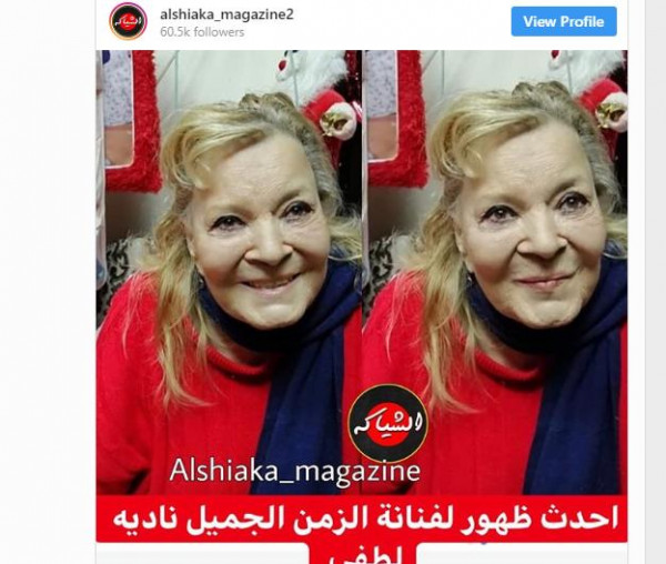 نشر أحد الحسابات التي تداول أخبار المشاهير على موقع الصور والفيديوهات إنستغرام صورا للفنانة المصرية نادية لطفي في أحدث ظهور لها .