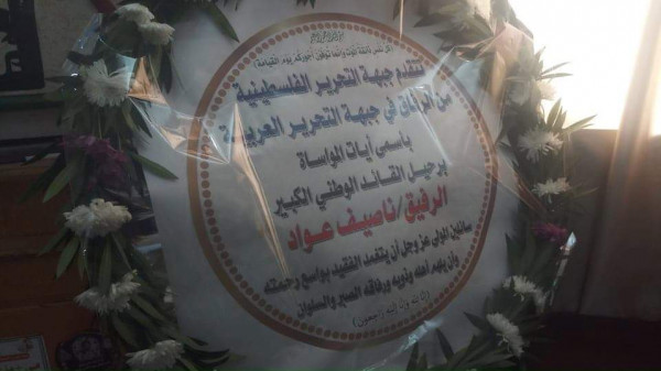 زارت قيادة جبهة التحرير الفلسطينية في قطاع غزة صباح اليوم بيت العزاء الذى أقامته جبهة التحرير العربية في مقرها في مدينة غزة لتقبل التعازي برحيل المناضل الكبير ناصيف سليمان عواد الأمين العام السابق للتحرير العربية الذى وافته المنية في عمان بعد حياة مليئة بالعطاء والنضال والتضحيات .