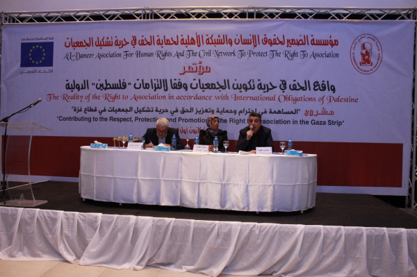 نظمت مؤسسة الضمير لحقوق الإنسان بالتعاون مع الشبكة الاهلية لحماية الحق في حرية تشكيل الجمعيات مؤتمراً بعنوان الحق في حرية تكوين الجمعيات وفقاً لالتزامات فلسطين الدولية اليوم بمدينة غزة.