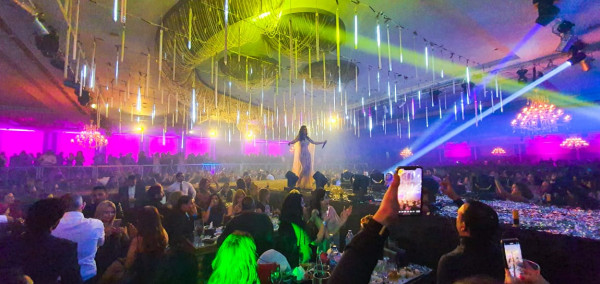 نيكول تشعل رأس السنة باطلالة ملكية بحفل كامل العدد