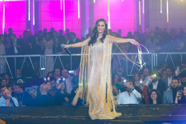 تألقت النجمة اللبنانية نيكول سابا، بإطلالة ملكية خلال إحيائها لأضخم سهرات رأس السنة داخل أحد فنادق القاهرة الكبرى التي حملت لافتة كامل العدد قبل الحفل بأسبوع.