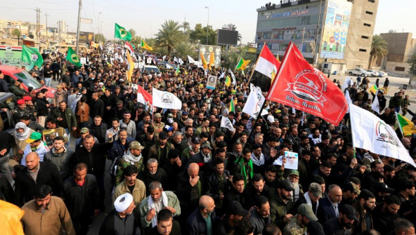 شارك عشرات الآلاف من الأشخاص في بغداد يوم السبت في تشييع قائد فيلق القدس التابع للحرس الثوري الإيراني قاسم سليماني، وأبو مهدي المهندس القيادي بالحشد الشعبي العراقي اللذين قتلا في ضربة جوية أمريكية بالعراق زادت من احتمال نشوب صراع أوسع في الشرق الأوسط.