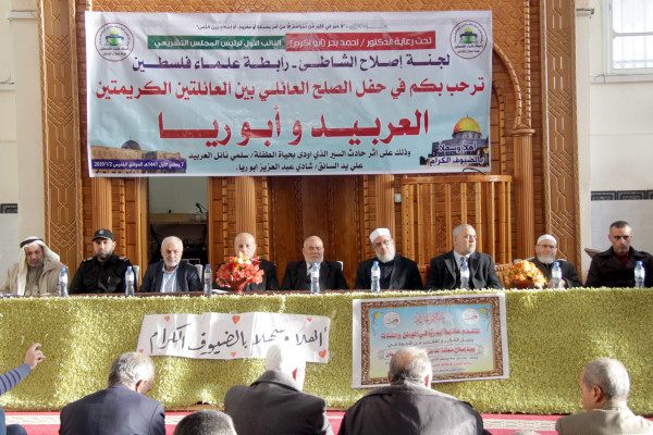 عقدت لجنة إصلاح منطقة الشاطئ التابعة لرابطة علماء فلسطين مراسم الصلح العائلي بين العائلتين الكريمتين العربيد وأبو ريا، وذلك على إثر حادث السير الذي أودى بحياة الطفلة/ سلمى نائل العربيد.