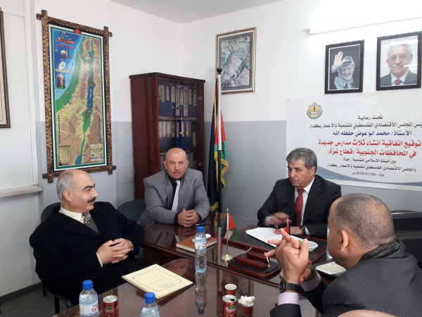 وقع رئيس المجلس الاقتصادي الفلسطيني للتنمية والإعمار ( بكدار) محمد أبو عوض، اليوم الأثنين، اتفاقية لإنشاء وتجهيز ثلاث مدارس جديدة في المحافظات الجنوبية.