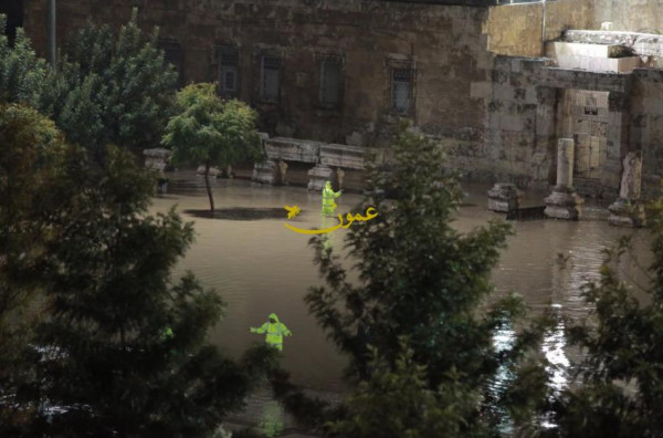 وأشار الرحامنة إلى ارتفع منسوب المياه في المدرج الروماني، والساحة الهاشمية، بشكل كبير جداً، مؤكداً إن كوادر الأمانة متواجدة في الموقع، وتعمل على تصريف المياه المتواجدة فيه.