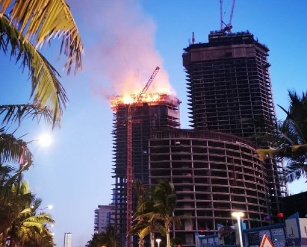 شاهد: حريق ضخم يندلع في بناء قيد الإنشاء بجدة