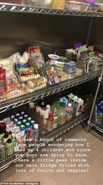 استعرضت كيم كاردشيان الثلاجات في منزلها وذلك ردا على صورة نشرها البعض وزعموا فيها أن ثلاجاتها فارغة، متسائلين : "كيف تطعم كيم أطفالها وثلاجاتها لا يوجد بها شيء".