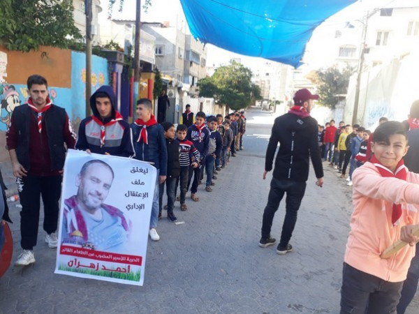 وقال قائد مجموعات الكشاف التقدمية أمجد أبو صفية في منطقة غزة الجنوبية، في تصريح وصل "دنيا الوطن": "أن هذا اليوم نُظم خصيصاً لإسناد الأسير البطل القائد أحمد زهران المضرب عن الطعام منذ ما يقارب 110 أيام، والذي يسطر أقوى أنواع البطولة بأمعائه الخاوية في مقارعة السجان والمحتل.