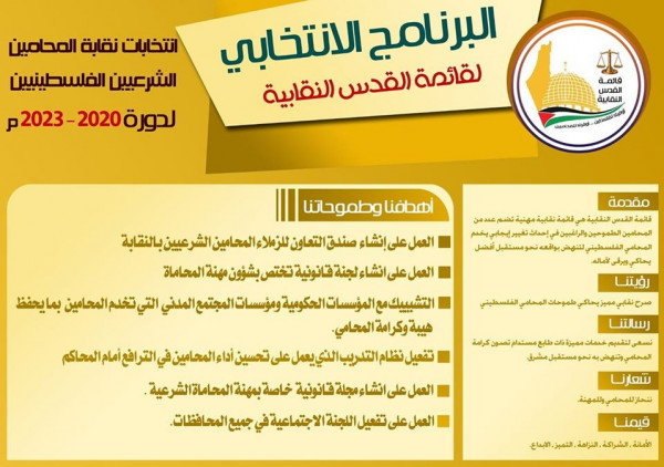 قائمة القدس التابعة للجهاد الإسلامي تُعلن فوزها بانتخابات نقابة المحامين الشرعيين