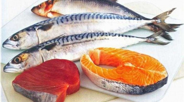 الأسماك الدهنية، مثل: السلمون، والتونة، والمكاريل، والسردين، والأكلات البحرية بشكل عام.
