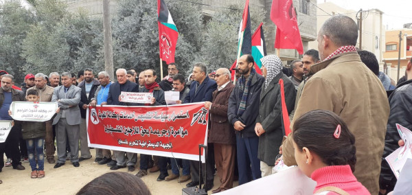 وقفة احتجاجية لدائرة اللاجئين بالديمقراطية أمام مركز خدمات (أونروا) بالبريج