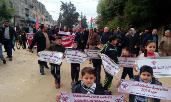 وأكد عضو القيادة المركزية للجبهة الديمقراطية ومسؤولها في المحافظة الوسطى ناهض القريناوي، أن أزمة (أونروا) سياسية بامتياز للنيل من حق العودة للاجئين الفلسطينيين. لافتاً للخطوات الأميركية- الإسرائيلية المتدحرجة للنيل من (أونروا) من إعادة تعريف اللاجئ وفرض الحصار المالي على الوكالة والتحريض عليها باتهامها بالفساد.