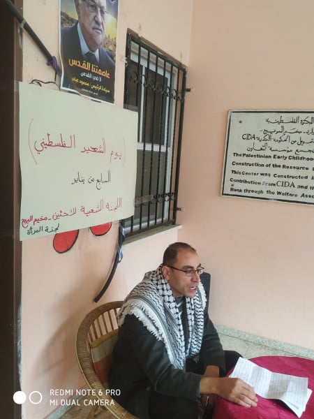 وقام أ. عاطف فؤاد حمد باعطاء ندوة تثقيفية للأطفال حول يوم الشهيد الفلسطيني موضحاً خلال حديثه أن يوم الشهيد الفلسطيني هو يوم لإحياء ذكرى شهداء فلسطين، والذي يصادف السابع من كانون الثاني من كل عام، أعلن عنه عام 1969، بعد أربعة أعوام على ارتقاء أول شهيد فلسطيني بالثورة الفلسطينية المسلحة (الشهيد أحمد موسى سلامة، وهو أول شهيد لحركة فتح والثورة الذي استشهد في الأول من يناير عام 1965، بعد أن نفّذ عمليته البطولية "نفق عيلبون") فصار هذا اليوم يومًا وطنيًا تخليداً لأرواح الشهداء الذين ضحوا بأنفسهم من أجل فلسطين.