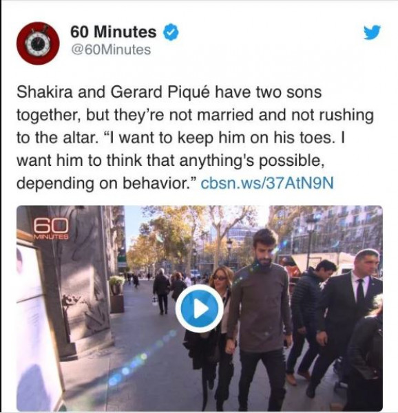 وأوضحت شاكيرا سبب عدم زواجها من بيكيه في مقابلة مع برنامج "60 دقيقة"، قائلة: "بصراحة، أنا أخاف بشكل فظيع من الزواج.
