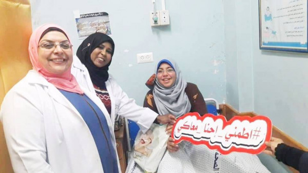 قابلات مستشفى الولادة بمجمع الشفاء الطبي تطلقن حملة "اطمني احنا معاكي"