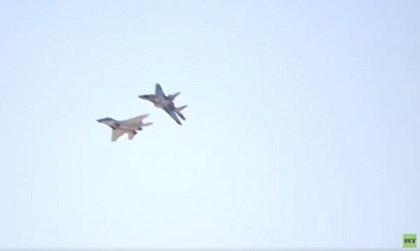 وظهرت مقاتلتان من طراز "ميغ-29" الحديثة خلال الفيديو، حيث قامتا بمناورة في السماء خلال التدريبات العسكرية.