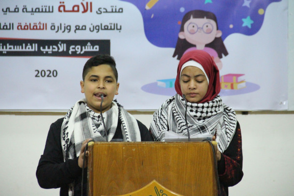 نظمت الإدارة العامة للآداب بوزارة الثقافة، بالتعاون مع منتدى الأمة للتنمية، 2020، حفلًا أدبيًا لعرض مواهب وابداعات الأطفال المنتسبين لبرنامج نادي الأديب الفلسطيني.