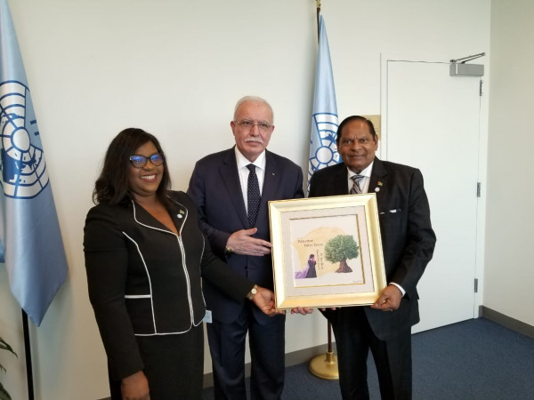 التقى د. رياض المالكي وزير الخارجية والمغتربين لدولة فلسطين مع رئيس وزراء جمهورية غيانا مسيس ناجاموتو في لقاء يروتوكولي قبيل تسليم دولة فلسطين لرئاسة مجموعة ال 77 والصين الى جمهورية غيانا.