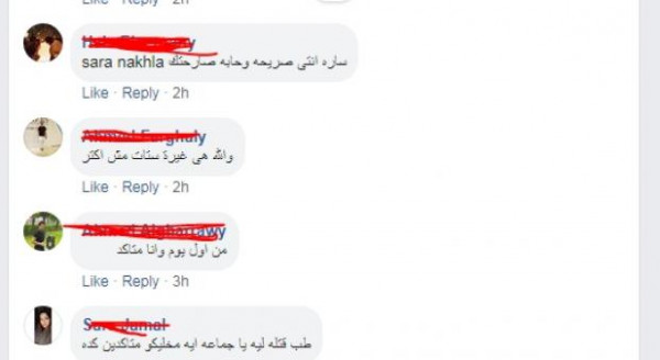 فقال أحدهما: "إنتي صريحة"، وقال آخر: "دي غيرة ستات".
