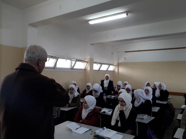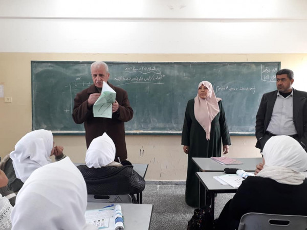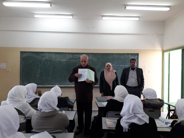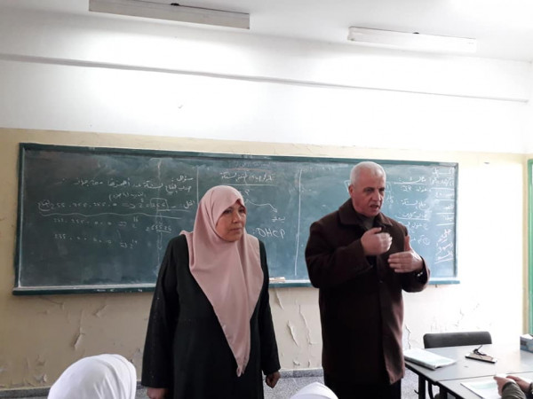 تفقد مدير التربية والتعليم في شمال غزة أ. نبيل العرابيد، سير العمل في مدرسة هايل عبد الحميد الثانوية للبنات، ورافقه في الزيارة المدير الإداري أ. جواد صالحة.