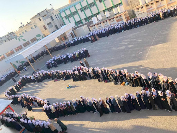 طالبات مدرسة طبريا بخانيونس يشكلن خارطة فلسطين من البحر إلى النهر