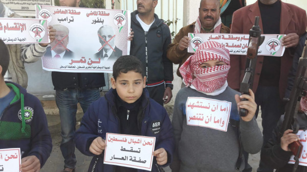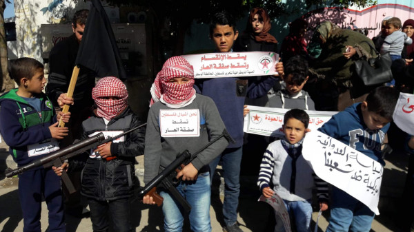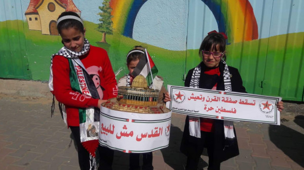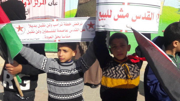 مسيرة أطفال غاضبة لـ"الديمقراطية" في مخيم المغازي تنديداً بـ(صفقة ترمب-نتنياهو)