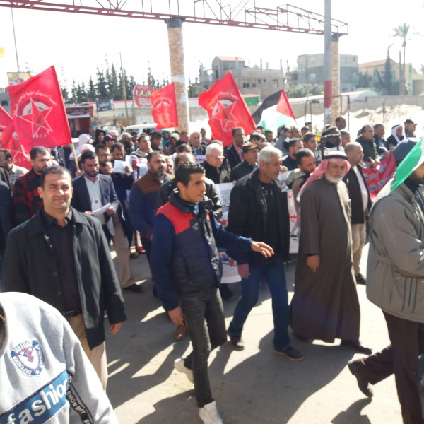 وألقى ناهض القريناوي مسؤول الجبهة الديمقراطية في المحافظة الوسطى كلمة لجان حق العودة، أوضح فيها أن «صفقة ترمب-نتنياهو» لن تمر، ولن يقبل شعبنا بها، مطالباً الدول العربية بعدم التعاطي مع هذه الصفقة المشؤومة وإدانتها.