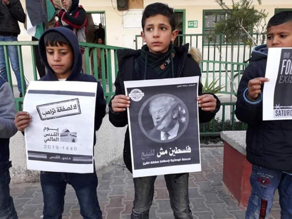 نفذ الاتحاد العام للمعلمين الفلسطينيين الأمانة العامة المحافظة الجنوبية، الخميس الموافق ٣٠/١/٢٠٢٠ برنامج وقفات تضامنية مع القيادة الفلسطينية ورفضا لصفقة القرن والداعمة للقيادة الفلسطينية في مواجهتها لمايسمى بصفقة القرن وذلك في مدارس محافظات قطاع غزة .