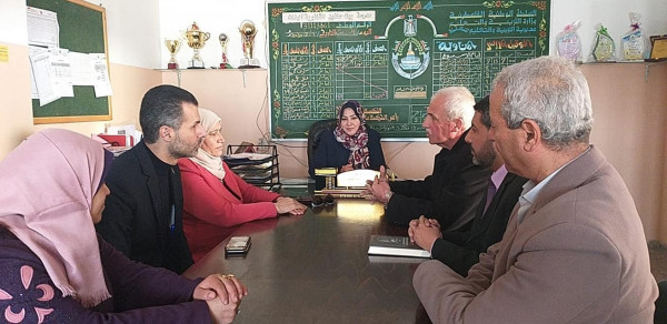 التقى مدير التربية والتعليم في شمال غزة أ. نبيل العرابيد، وزيرة شؤون المرأة د. آمال حمد، بحضور مدير الدائرة الإدارية أ. جواد صالحة، و مديرة مدرسة بيت حانون الثانوية أ. سعدة ابراهيم حسنين، و نائب المديرة أ. إيمان الشنباري و معلمات المدرسة و طالباتها.