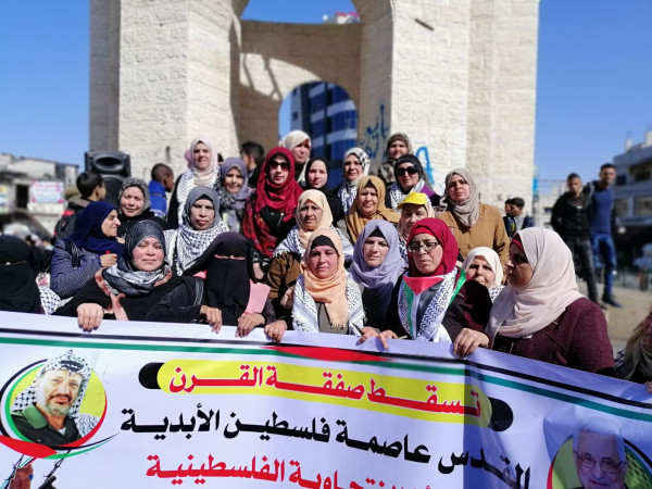 وأكدن المشاركات على أن مشاركة المرأه المناضلة في كل الميادين هو واجب وطني نحو الحرية والاستقلال وإقامة الدولة الفلسطينية المستقلة وعاصمتها القدس الشريف وأن الوحدة الوطنية هي الطريق الامثل لمجابهة صفقة العار اللعينة.