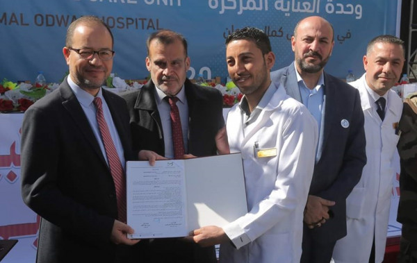 وفي ختام الافتتاح، كرمت قيادتا الداخلية والصحة الوفود والمؤسسات الداعمة، كما تم توزيع عقود عمل لـ 14 طبيباً وممرضاً ضمن طاقم قسم العناية المركزة بمجمع كمال عدوان الطبي، كما تم تفقد القسم الجديد والاطلاع على وحداته.