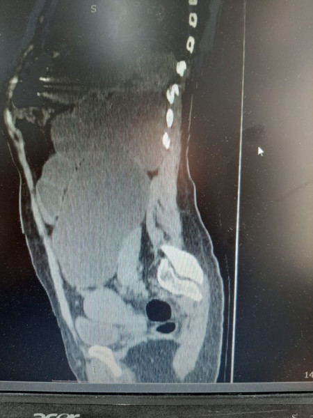 ويتابع قائلا:" وصلت المريضة الى قسم الطوارىء بالمستشفى تشكو من آلام فى الخاصرة اليسرى وتم تحويلها إلى عيادة المسالك البولية فى العيادة الخارجية،وبعد الفحص الإكلينيكيى اولا، لوحظ انتفاخ كبير فى حجم البطن فى الجانب الأيسر ،ومن ثم أجريت لها صورة تليفزيون وصورة مقطعية التى أظهرت وجود أكياس بها صديد وبأحجام كبيرة جدا.التشخيصي(Non functioning Lt kidney).