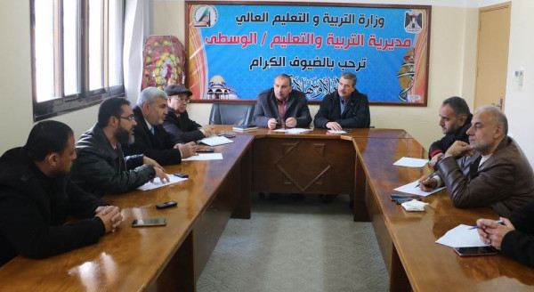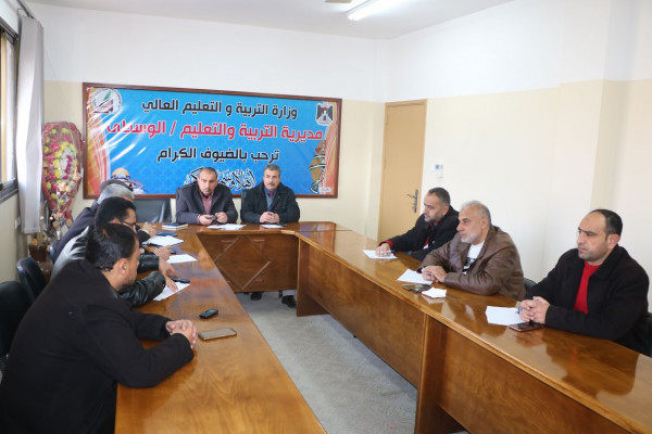 بحثت مديرية التربية والتعليم بالوسطى الزيارات الميدانية وخطط المتابعة للمدارس من قبل الأقسام الفنية، جاء ذلك خلال اجتماع مدير التربية والتعليم هشام الحاج و مدير الدائرة الفنية محمد حمدان برؤساء الأقسام الفنية بالمديرية.