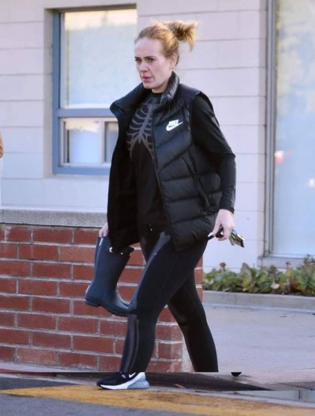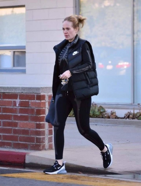 وبحسب مجلة "جولولي"، التقطت عدسات المصورين، مجموعة من الصور للمغنية أديل، يوم الأربعاء 12 فبراير، حيث كانت ترتدي ملابس رياضية تألفت من قميص رياضي لونه أسود نسقته مع ليجيجنز مطابق، وانتعلت في قدميها حذائا رياضيا أسود، ووضعت على رأسها قبعة سوداء من علامة نايكي وصل سعرها إلى 32 دولارا.