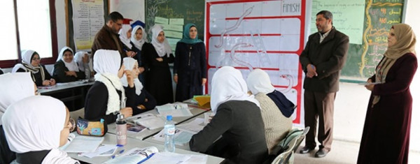 فيما طافت المعلمة نهلة العكّة، كما النحلة تجمع شذى الزهور؛ لتصنع منها شهداً حلو المذاق في درس اللغة الإنجليزية لطالبات الصف الثاني عشر- علمي، عبر استراتيجية الألعاب التربوية الممتعة.