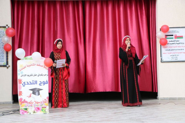 تقديراً لتفوقهن واجتهادهن خلال الفصل الدراسي الأول وتشجيعاً لغيرهن من الطالبات، كرمت مدرسة مسقط النصيرات الثانوية للبنات بمديرية التربية والتعليم بالوسطى طالباتها المتفوقات خلال الفصل الدراسي الأول في احتفال مميز بعنوان فوج التحدي نظمته المدرسة بحضور مدير التربية والتعليم بالوسطى هشام الحاج ومدير التربية والتعليم السابق علي أبو حسب الله ومدير الدائرة الفنية محمد حمدان ورئيس بلدية النصيرات وعدد من رؤساء الأقسام والمشرفين التربويين والمجلس المركزي لأولياء الأمور ومديرة المدرسة وفاء غنيم وأسرة المدرسة والمجتمع المحلي.