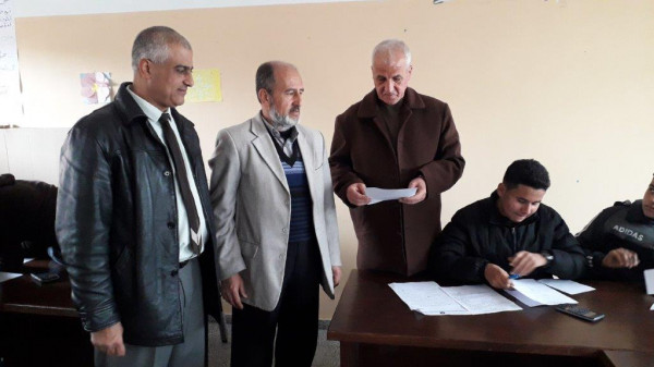 وتفقد سير المسابقة التي تعقد بمركز التدريب التابع للمديرية (بنين)، ومدرسة الفالوجا الثانوية للبنات (بنات)، مدير التعليم أ. نبيل العرابيد، ورئيس قسم الإشراف التربوي أ. مطر الغفري، ومشرف مركز التدريب أ. إبراهيم اليعقوبي، ومشرف اللغة العربية أ. محمود بعلوشة، ومشرف الرياضيات أ. سامي بدر.