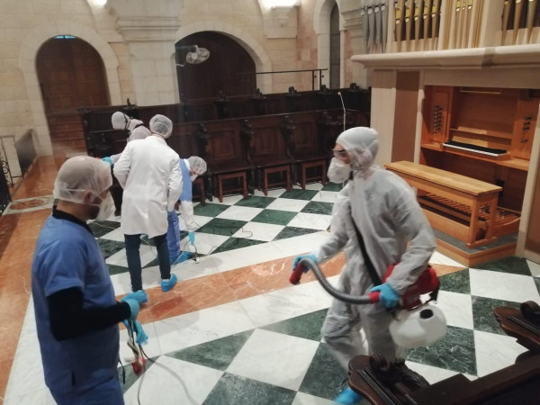 تعقيم كنيسة المهد في بيت لحم كإجراء احترازي للوقاية من الفيروسات