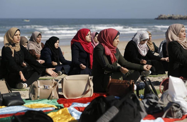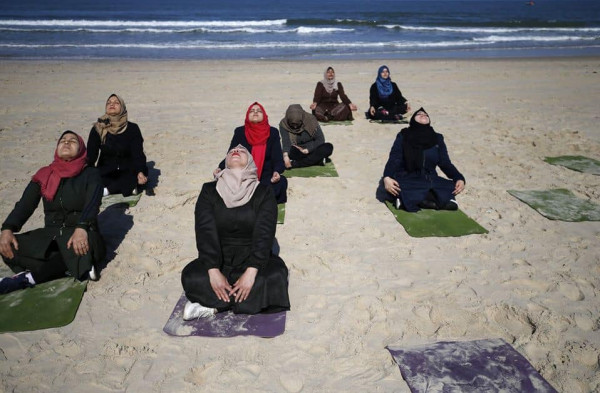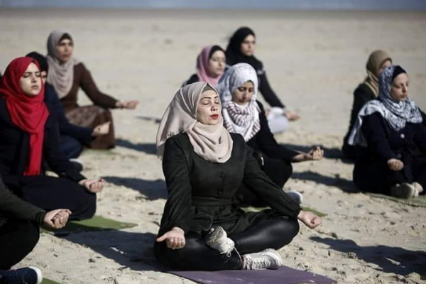 يمارسن فن (اليوغا) في صورة جديدة عن الحياة المختلفة للمجتمع الغزي، وهرباً من المتاعب، وضغوطات الحياة، اخترن البحر رفيقاً لممارسة (اليوغا) في ساعات الصباح الأولى.