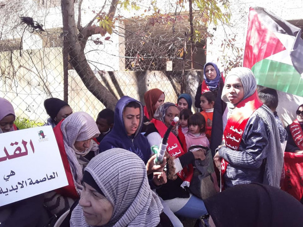 وجاء هذا الاعتصام من قبل جمهور اتحاد لجان العمل النسائي الفلسطيني لنؤكد أن المراة الفلسطينية تقف دوما مع الثوابت الفلسطينية الرافضة للاحتلال الاسرائيلي وممارساته العدوانية ضد ابناء شعبنا الفلسطيني وعلى راسهم اسراتنا واسرانا ، رافضين كل ما ينتقص من حق شعبنا في الحرية والاستقلال والعودة ، وعلى راسها الخطة الامريكية – الاسرائيلية الجديدة المسماة "بصفقة القرن " .