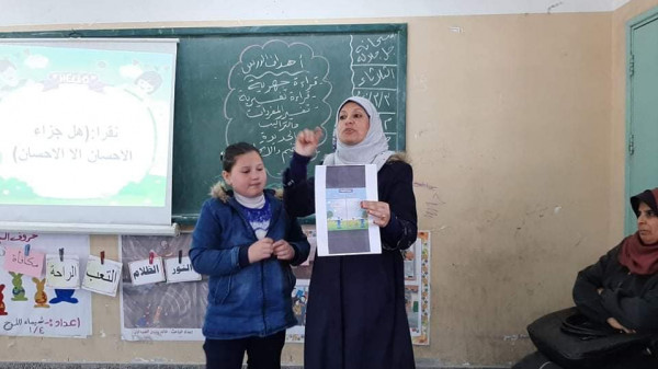 في إطار التعاون مع المجتمع المحلي وضمن عملية التعليم الممتع نظمت مدرسة العائشية الأساسية المشتركة بمديرية التربية والتعليم بالوسطى درساً توضيحياً في مبحث اللغة العربية للصف الرابع الأساسي نفذته المعلمة سوزان أبو سمرة بحضور وتفاعل من قبل أولياء الأمور ومديرة المدرسة عفاف مزيد ونائبها وعدد من معلمات مبحث اللغة العربية بالمدرسة .