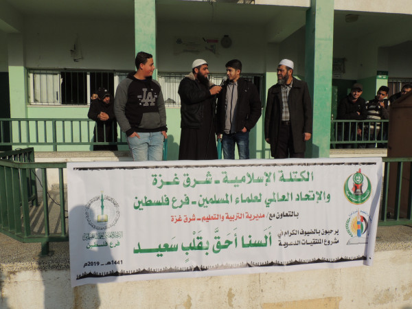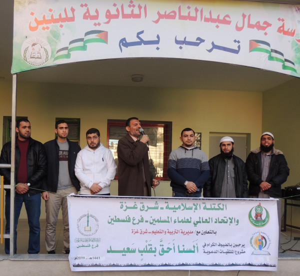 اختتم الاتحاد العالمي لعلماء المسلمين، بمدرسة جمال عبد الناصر الثانوية للبنين مشروع الملتقيات الدعوية في منطقة شرق مدينة غزة "ألسنا أحق بقلب سعيد" والذي افتتح في بداية الفصل الدراسي الأول 2019 بالتعاون والتنسيق مع الكتلة الإسلامية والذي يستهدف المدارس الثانوية والاعدادية للطلاب.